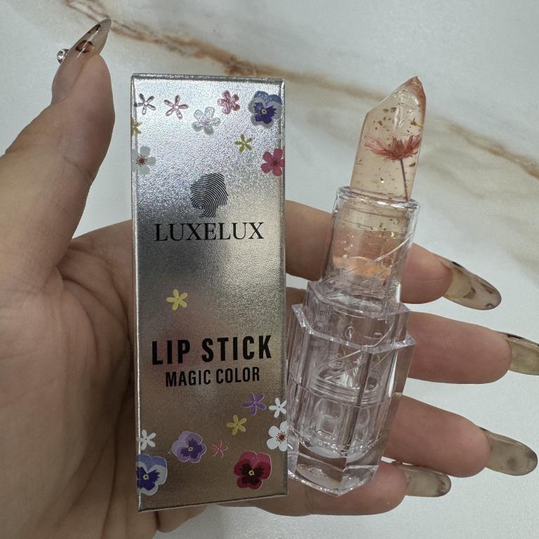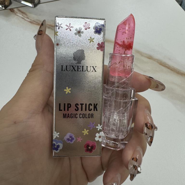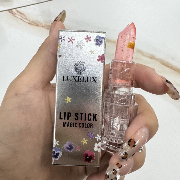 Pomadka do ust zmieniająca kolor LUXELUX带不可溶金箔加干花透明变色口红 02#